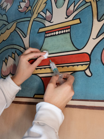 Lors de l'étude préalable, le conservateur-restaurateur s'attache au lien primordial entre l'architecture et la peinture murale.